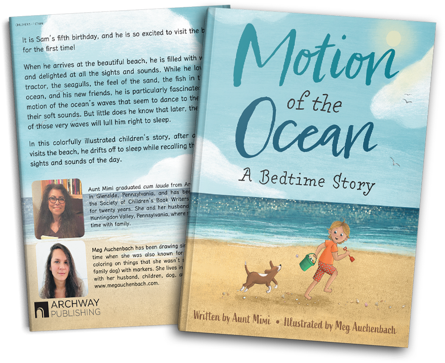 When he arrives at the beautiful beach, he is filled with wonder and delighted at all the sights and sounds. While he loves the tractor, the seagulls, the feel of the sand, the fish in the vast ocean, and his new friends, he is particularly fascinated by the motion of the ocean’s waves that seem to dance to the beat of their soft sounds. But little does he know that later, the memory of those very waves will lull him right to sleep.